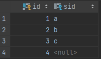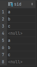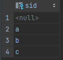 select sid from N except select ('c');